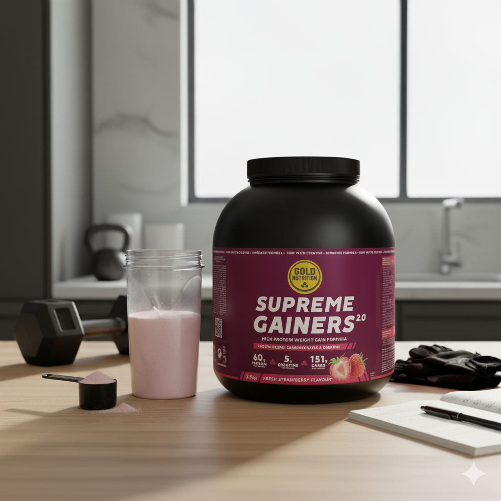 Supreme Gainers 2.0 GoldNutrition® es la solución para aquellos que tienen dificultades para ganar peso o para los deportistas con altas necesidades calóricas. Esta fórmula hipercalórica combina proteínas de suero de leche (absorción rápida) con caseína (absorción lenta). Esta liberación bifásica de aminoácidos mantiene un entorno anabólico durante más tiempo, optimizando la síntesis proteica de forma continuada.