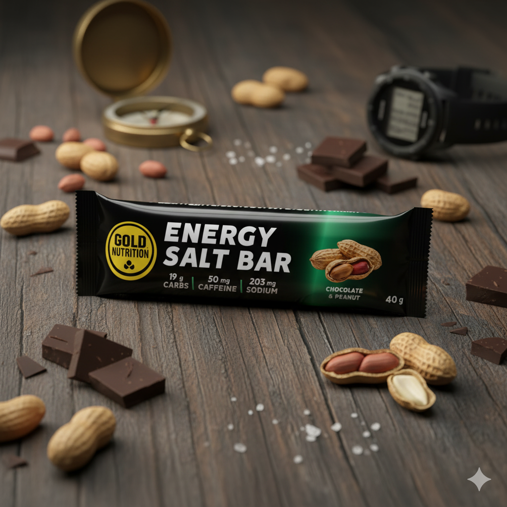 La GoldNutrition Energy Salt Bar® ha sido creada pensando en tus necesidades como atleta de resistencia, con un sabor único y una funcionalidad superior. Con 200 mg de sodio por barrita, ayuda a reponer el principal electrolito que pierdes con el sudor, y es crucial para prevenir la hiponatremia y los calambres.